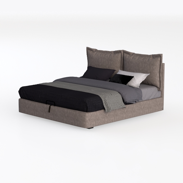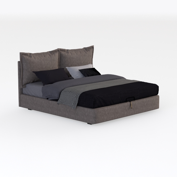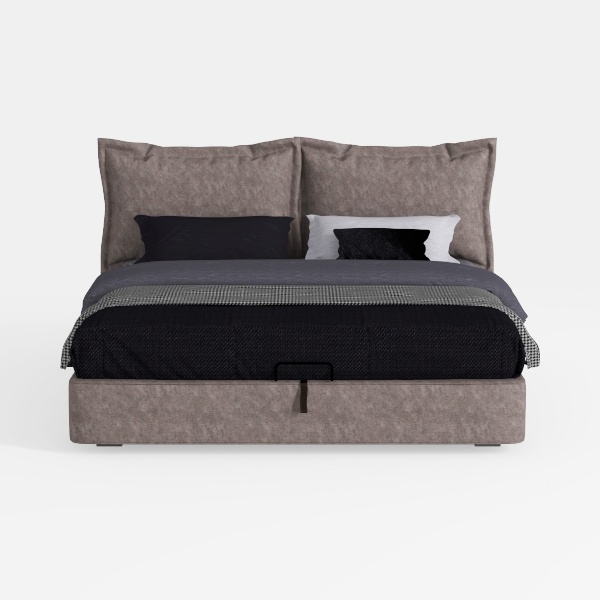 Beyond its visual appeal, the bed prioritizes comfort and utility: the low-profile frame and streamlined silhouette ensure a spacious feel, while a hidden storage compartment beneath offers practicality, ideal for stashing extra linens or seasonal items. Every element, from the soft fabric to the strategic storage, comes together to craft a bed that’s as beautiful as it is functional, inviting rest and rejuvenation into daily life.