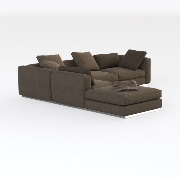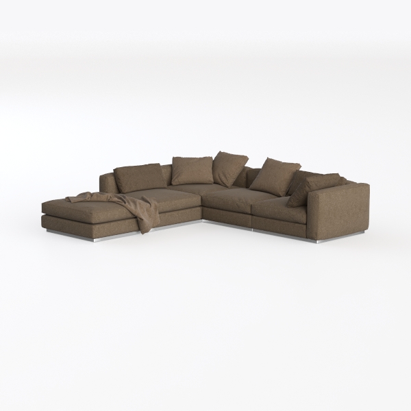 Introducing a luxurious sectional sofa that effortlessly combines comfort and modern aesthetics. Inspired by contemporary minimalist design, this piece features a warm, earthy tone that adds a touch of sophistication to any living space. Its plush fabric invites you to sink in, providing a soft, inviting texture that enhances the overall experience of relaxation. The sleek metallic legs offer a striking contrast, grounding the design while maintaining an airy feel.