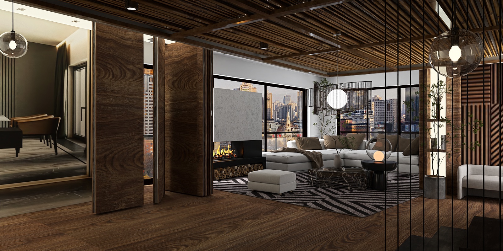 Italian Minimalist Living Room Corner Straight Row Wood Skeleton Leather Feather Sofa