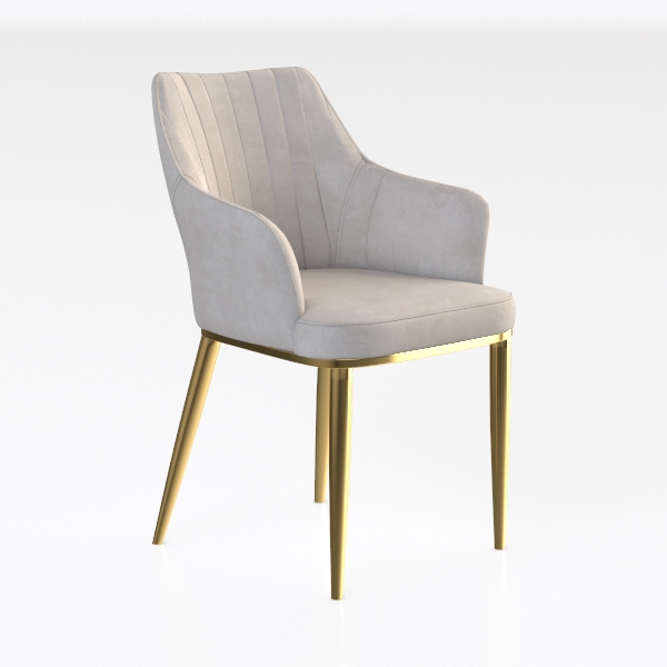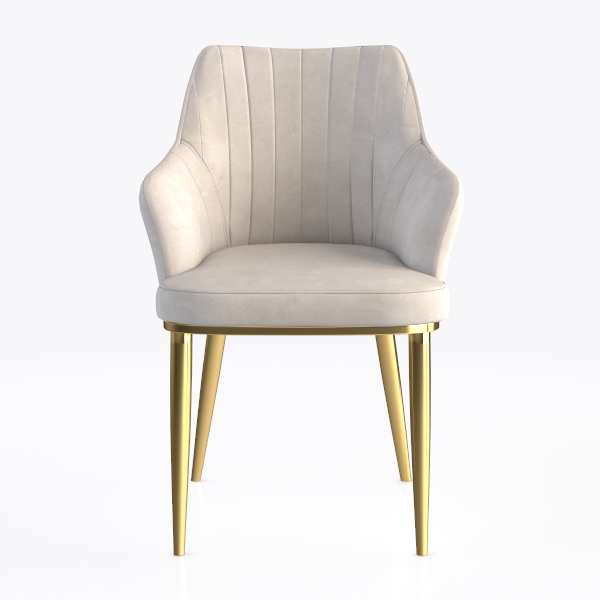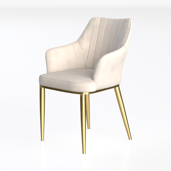 Perfect for a contemporary dining room or a minimalist living area, it pairs effortlessly with marble side tables, a black or white dining table, and a chandelier with metallic accents, elevating the space with understated luxury. Functionality is key here too: the sturdy gold legs ensure stability, while the sloped back and contoured seat support the body, making it ideal for both daily meals and relaxed afternoons. In short, this chair is more than furniture—it’s a blend of beauty and comfort that transforms any room into a haven of refined style.