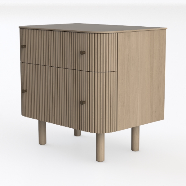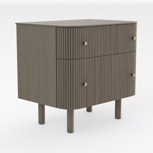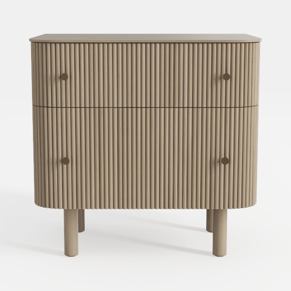 Inspired by natural textures, this cabinet showcases vertical ribbed patterns in warm beige, blending soft touch with subtle visual depth. Its clean lines and rounded edges create a calm, sophisticated vibe, perfect for a modern Scandinavian or minimalist living room. Sturdy, slender legs add lightness, while two spacious drawers offer practical storage for daily essentials.