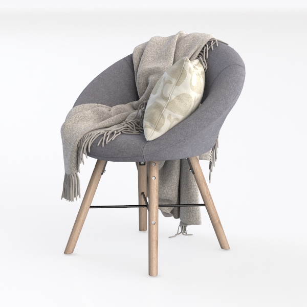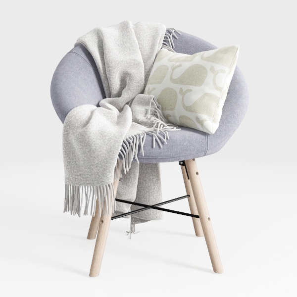 Crafted with soft, organic curves, this armchair takes inspiration from nature’s gentle lines, balancing simplicity with warmth. Its light gray upholstery feels smooth and plush, while the fringed throw and whale-patterned pillow add cozy texture. Ideal for modern minimalist or Scandinavian spaces, pair it with marble side tables and metallic accents. Sturdy wooden legs and ergonomic design ensure both style and lasting comfort.