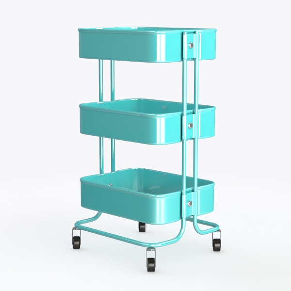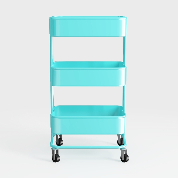 Inspired by minimalist living, this light turquoise shelf blends sleek design and practicality. Its smooth, matte surfaces feel cool to the touch, with clean lines and balanced tiers creating a fresh, airy look. Perfect for small kitchens or bathrooms, it pairs with Scandinavian or modern decor, complementing marble countertops or wooden shelves. Wheels ensure easy mobility, three spacious tiers offer ample storage, easing daily organization.