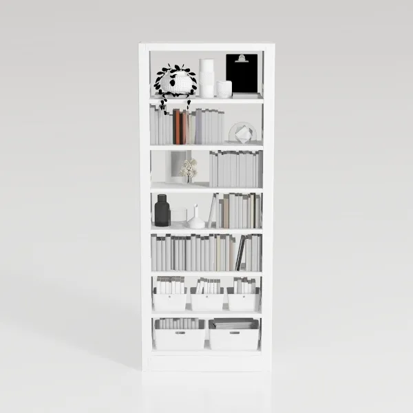 Crafted from minimalist design, its smooth, matte white surface brightens spaces with clean lines. Ideal for modern living rooms or home offices, pairing beautifully with wooden accents or potted plants. Five spacious shelves offer ample storage for books, decor, or collectibles, balancing aesthetics and practicality.