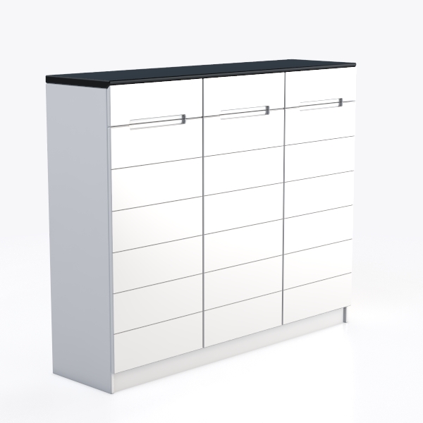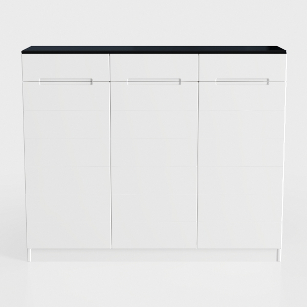 Inspired by minimalist design, this cabinet blends clean lines with functional storage. Its smooth, matte white surfaces and sleek black countertop create a crisp, contemporary vibe, brightening any room. Perfect for modern minimalist or Scandinavian-style spaces—ideal for living rooms, dining areas, or entryways, pairing beautifully with wooden floors and soft decor. Spacious compartments and integrated handles offer ample storage, keeping spaces clutter-free.