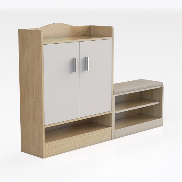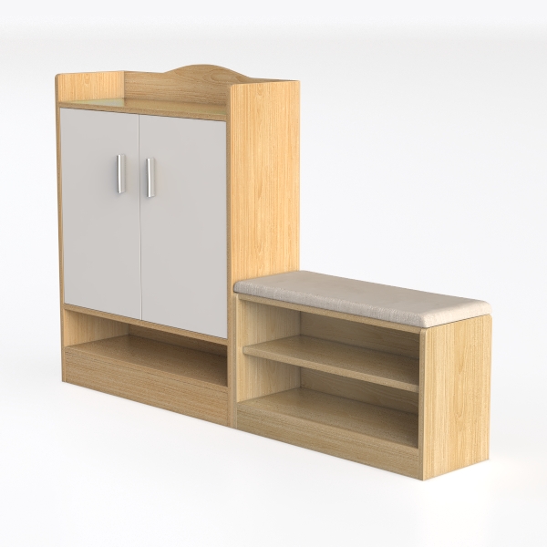 Designed for minimalist living, this entryway unit blends warm wood tones with crisp white surfaces, evoking a clean, organized vibe. The smooth wooden frame offers a tactile warmth, while the matte white doors add a fresh, bright contrast. Perfect for modern or Scandinavian entryways, it pairs beautifully with light-colored walls and potted greenery. A lower shelf stores daily shoes, and the padded bench provides a cozy spot to sit while changing footwear, balancing style and practicality.