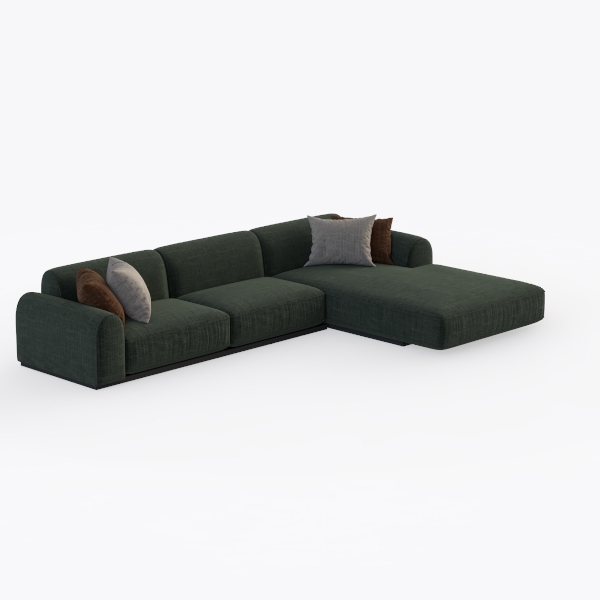 Inspired by the tranquil allure of nature’s lush landscapes, this L-shaped sofa embodies a harmonious blend of modern minimalism and organic warmth. Its design draws from the quiet richness of deep, earthy tones, with a focus on soft curves and balanced proportions that feel both intentional and effortless, as if it were crafted to adapt seamlessly to daily life—whether for lively family dinners or lazy weekend afternoons.