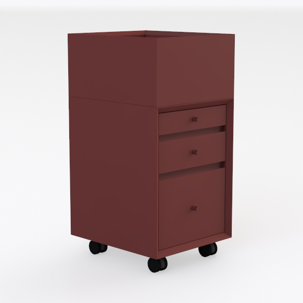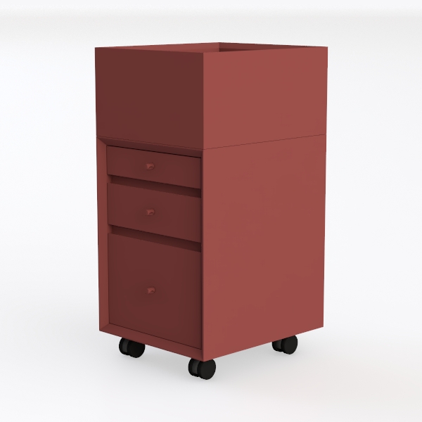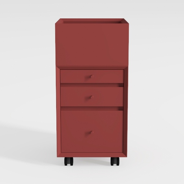Inspired by modern minimalism, this compact cabinet blends functionality and style. Its smooth, matte red surface feels cool to the touch, with a warm, inviting hue under soft lighting. Perfect for a cozy bedroom or sleek study, it pairs beautifully with wooden floors and neutral-toned decor. Three roomy drawers offer ample hidden storage, while the casters at the base ensure easy mobility.