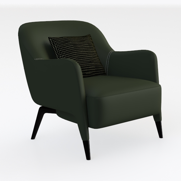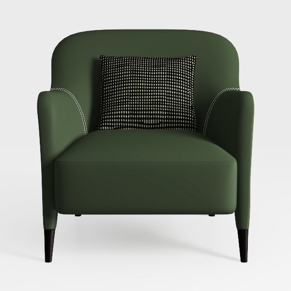 Inspired by mid-century modern design, this armchair merges timeless elegance with modern charm. Its soft, velvety green upholstery feels smooth to the touch, while the sleek silhouette and subtle white stitching add gentle texture. Ideal for modern minimalist or Scandinavian living rooms, it pairs beautifully with marble coffee tables and metallic floor lamps. A generous seat depth and curved armrests ensure exceptional comfort, making it a cozy spot for unwinding.