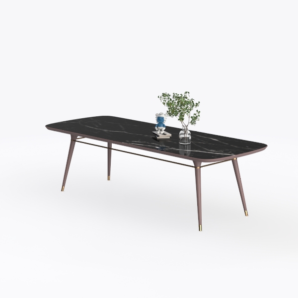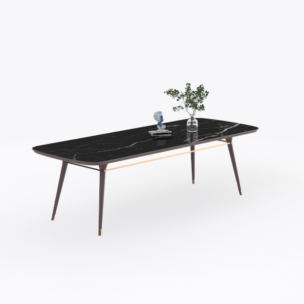 Inspired by the interplay of natural stone veining and geometric minimalism, this table features a smooth, glossy black marble top and delicate rose gold metal legs. Its sleek lines and contrast of dark and soft tones create a modern, sophisticated look, ideal for minimalist or contemporary living rooms. The spacious surface offers ample room for decor, books, or small plants, balancing elegance with practicality.