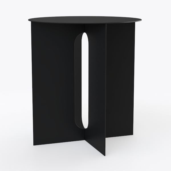 This minimalist side table draws inspiration from bold geometric shapes, with a sleek matte black surface and clean vertical lines. Its smooth touch contrasts with the subtle depth of the open middle, creating a striking modern silhouette. Ideal for modern, Scandinavian, or industrial spaces, pair it with a plush sofa and metallic lamp. Sturdy yet lightweight, it holds drinks or decor while the unique cut-out adds both functionality and visual intrigue.