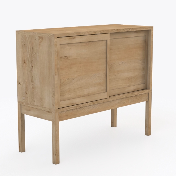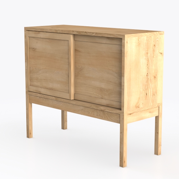 Designed with Scandinavian minimalism and natural wood essence, this cabinet features a warm, tactile surface with visible wood grain and soft matte finish, creating a serene, earthy vibe. Ideal for a cozy living room or dining area, pairing beautifully with linen sofas and potted succulents, its sliding doors open to a spacious interior, while slim, sturdy legs add lightness and easy cleaning access below.