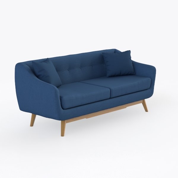 Visually, the sofa feels both grounded and airy: the rich blue hue grounds the space with a sense of calm, while the light oak legs—slim, tapering, and warm—lift the piece, balancing its solid presence with a light, almost weightless feel. It’s an ideal anchor for a modern living room, whether styled in a sleek, monochromatic palette (paired with a marble coffee table and a sculptural ceramic vase) or softened with textured elements like a knit throw or a potted fiddle-leaf fig nearby.