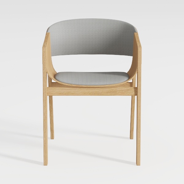 Inspired by organic minimalism, this chair blends a light oak frame with smooth wood grain and soft grey upholstery. Its curved back and generous seat depth offer ergonomic comfort, ideal for modern dining or living spaces—pair with marble tables and linen decor for a warm, balanced look.