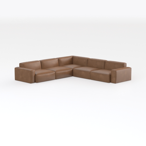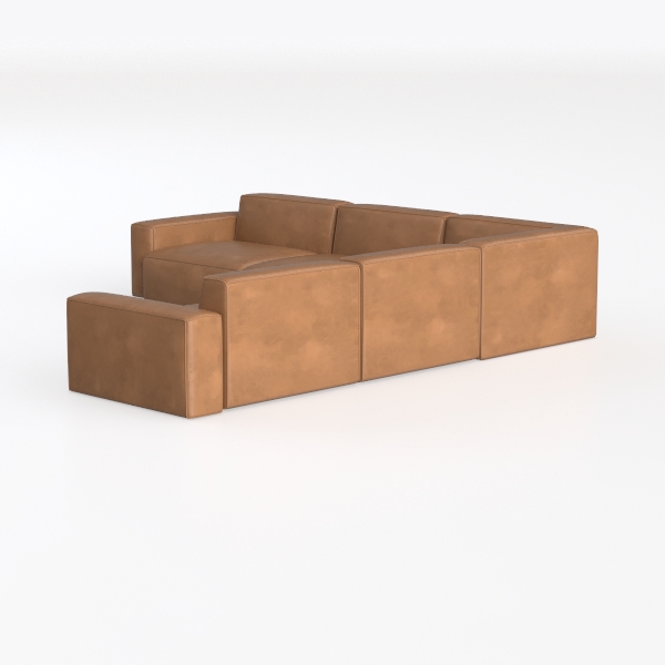 The sofa’s caramel-brown upholstery catches the eye first, rendered in a smooth yet tactile material that feels premium without being cold. The surface has a subtle sheen that softens under touch, with a rich, earthy depth that evokes the warmth of natural materials. Its modular structure features angular armrests with gently rounded edges, and a seamless integration of backrest and seat that eliminates clunky transitions, making the overall silhouette feel cohesive and expansive. In soft lighting, the sofa’s warm hue reflects gently, adding depth to the room without overwhelming it, whether in a bright, airy space or a cozy corner.