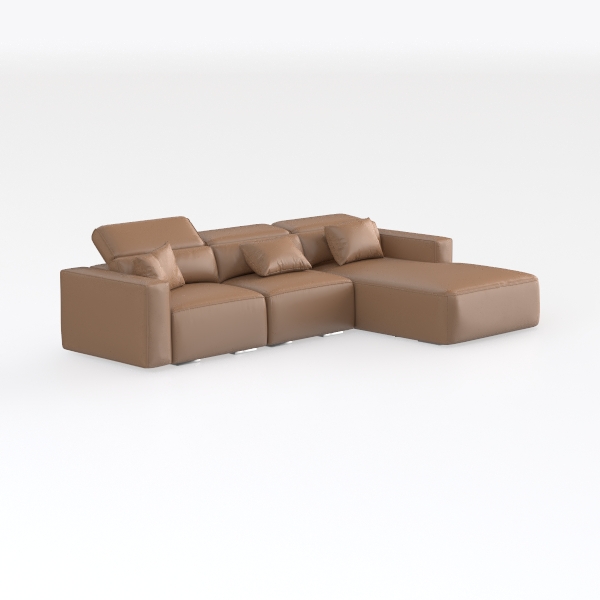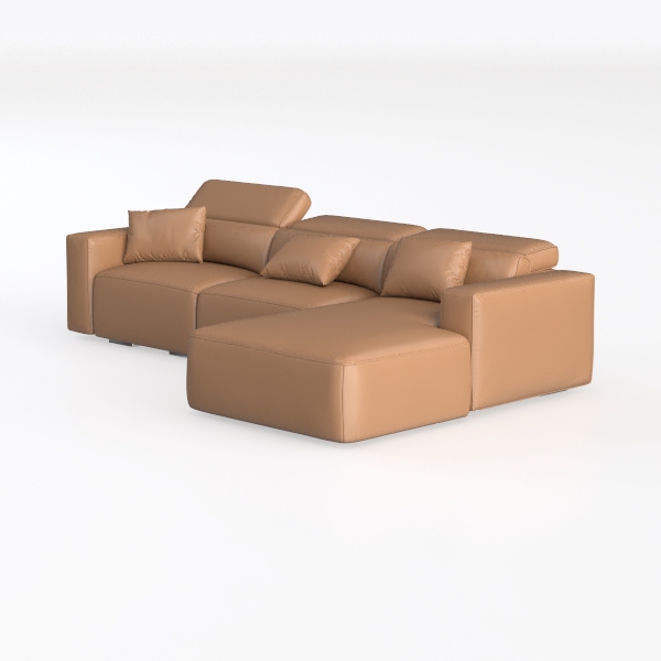Valencia Nathan Nappa Leather Couch - 4 Seats with 2 Chaises - 100% Full Aniline Leather Modern Sectional Sofa for Lounge and Living Room Solid Wood Frame and High-Resilience Foam (Caramel Brown)
