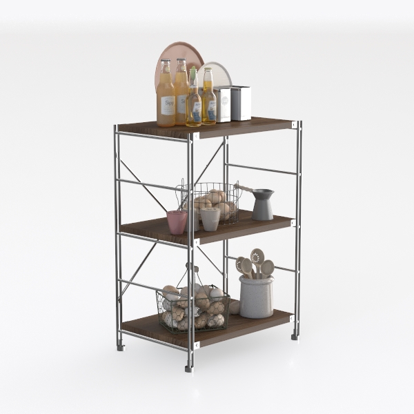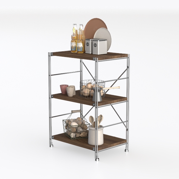Inspired by minimalist practicality, this multi-tiered shelving unit blends warm wood tones with sleek metal frames, creating a balanced, tactile feel. Visual depth comes from layered textures—tactile wood and smooth metal. Ideal for modern kitchens, it pairs with rustic kitchenware, storing ingredients and utensils stably, keeping spaces organized and cozy.