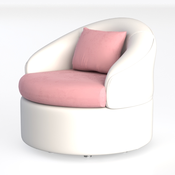 The chair features a sleek, matte white frame that contrasts beautifully with the plush, velvety pink upholstery of the seat and matching throw pillow. The white surface has a subtle, warm glow, catching light softly to avoid harshness, while the pink fabric, with its fine, inviting texture, feels delightfully soft to the touch—like sinking into a cloud, promising a tactile experience that’s both gentle and reassuring.