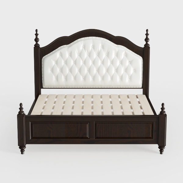 Echoing timeless charm from classic design, this bed blends rich dark wood with soft white leather tufted headboard. The wood’s warm grain and leather’s smooth texture create a cozy, elegant vibe, balancing sturdiness and softness. Ideal for a French country or modern minimalist bedroom, pair it with marble nightstands and linen bedding for a refined look. Beneath the slatted base, deep drawers offer ample storage, enhancing both style and practicality.