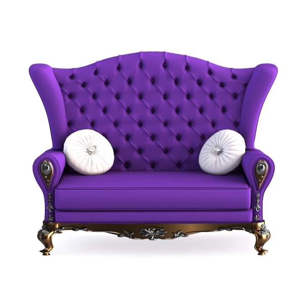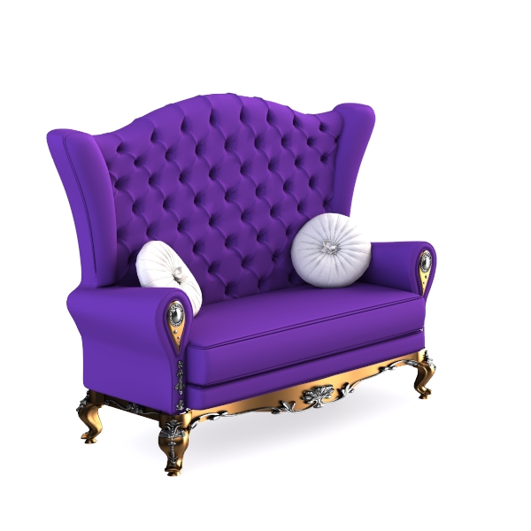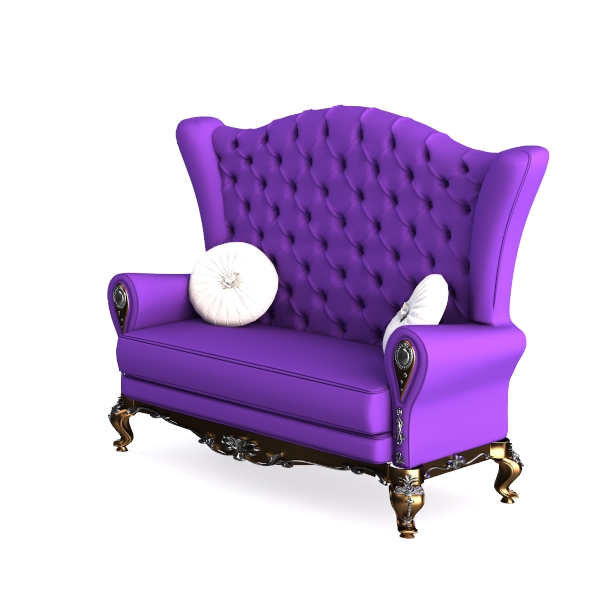 This sofa draws inspiration from the timeless elegance of classical design, merging the intricate craftsmanship of 18th-century upholstery with modern comfort. Its deep amethyst upholstery, with a velvety, plush texture, feels soft to the touch, while the classic button-tufted pattern creates a subtle, three-dimensional rhythm across the backrest and seat, adding depth to the surface. The gilded, ornate legs—adorned with delicate floral engravings—shine warmly against the rich purple, balancing the softness of the fabric with a touch of opulent sophistication.