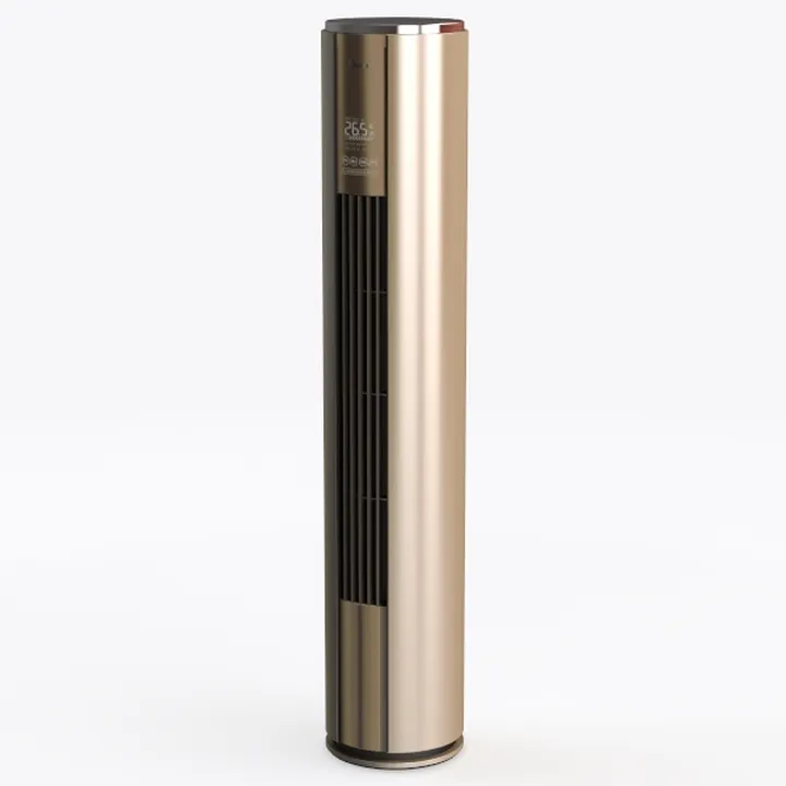A 3D model of an Air Conditioner, featuring gold metallic finish and a sleek, modern design aesthetic. It has detailed 3D structure and is suitable for indoor home or office temperature regulation.