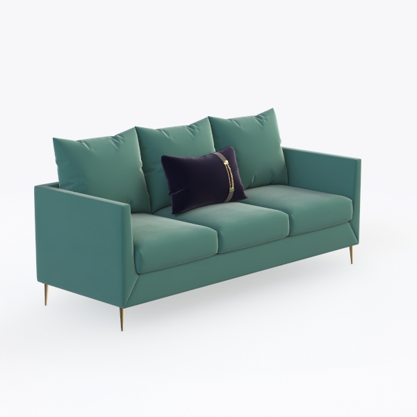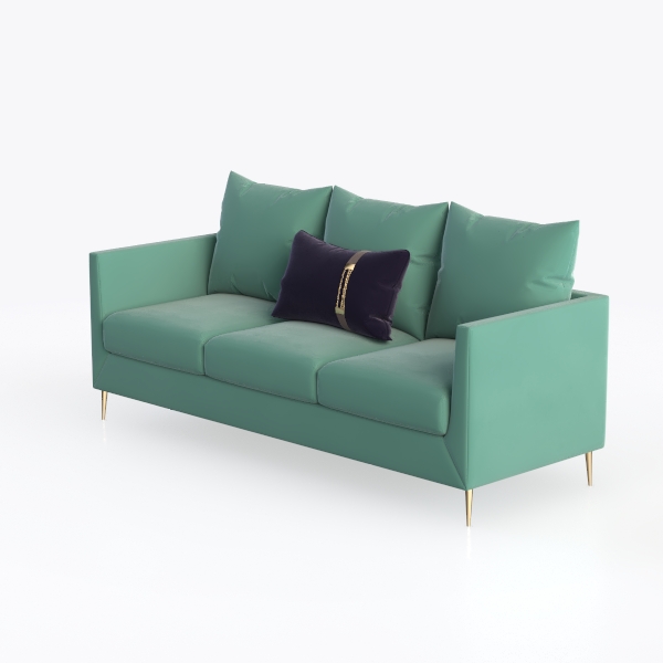 Inspired by the soft, fresh hues of spring blooms, this sofa merges organic calm with contemporary elegance. Its mint green upholstery feels surprisingly inviting—plush yet smooth, with a delicate texture that catches light softly, casting a warm, serene glow. The clean, streamlined frame features slim, gold-plated legs, adding a touch of understated luxury that balances the piece’s gentle color, making it feel both grounded and elevated.