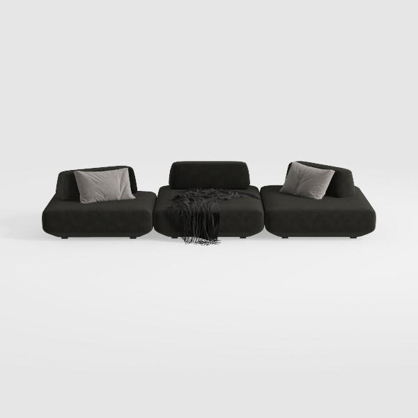 This modular seating ensemble takes cues from modern interior design philosophy, blending geometric precision with organic softness to redefine living room comfort. Its design摒弃 rigid lines in favor of gentle curves, mirroring the fluidity of natural forms while maintaining a grounded, intentional structure.
