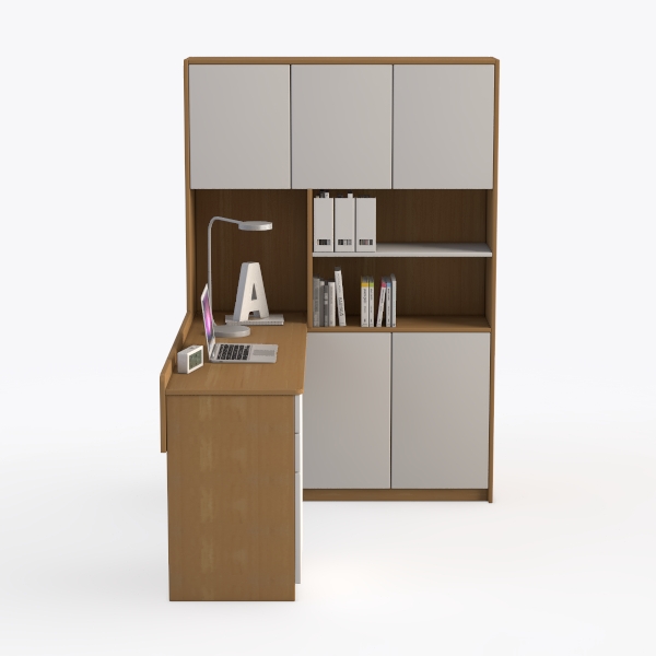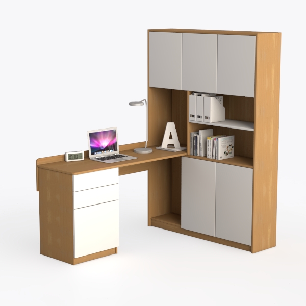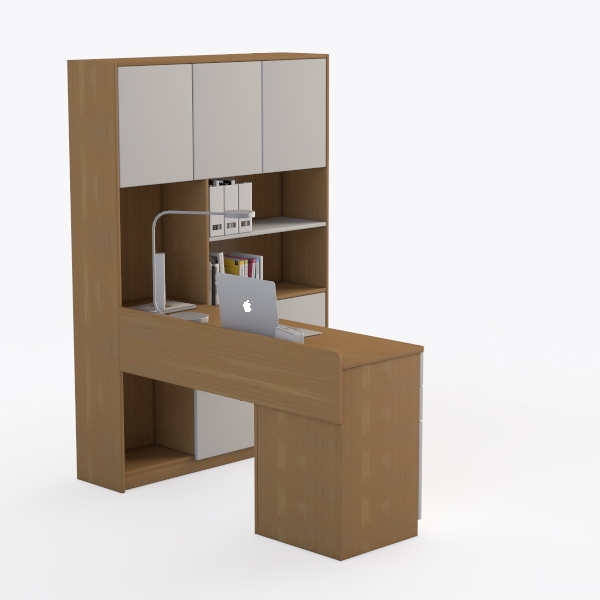 Designed for a clutter-free workspace, inspired by minimalist living to blend functionality with sleek aesthetics. Warm wood grains and matte gray panels create soft, tactile texture, while clean lines enhance visual calm. Ideal for a modern home office, pairing with neutral rugs and potted plants to boost minimalist style. Spacious drawers and open shelves offer ample storage, with a built-in workspace ensuring organization and comfort during long hours.