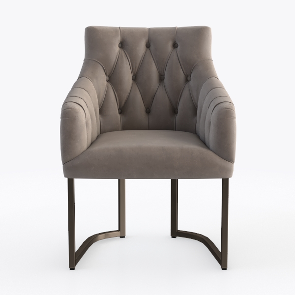 Inspired by mid-century modern design, this chair blends soft velvet upholstery with tufted details, offering a warm, tactile feel. Sleek metal legs add a modern edge, making it perfect for contemporary living rooms or home offices. Pair with marble tables and wooden floors, and its plush seat with wide armrests ensures exceptional comfort for extended relaxation.