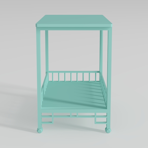 Blending traditional Chinese bed frame simplicity with modern minimalism, this piece features a soft mint-green hue, smooth surface, and open railings. Its light, airy design suits serene bedrooms or studies, pairing well with warm wood and soft lighting. Wheeled base enables easy mobility, while slatted sides ensure stability and space efficiency.