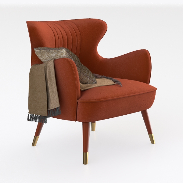 Every element—from the warm orange to the brass accents—blends to craft a piece that feels both timeless and current, a true centerpiece that elevates any room with style and comfort.