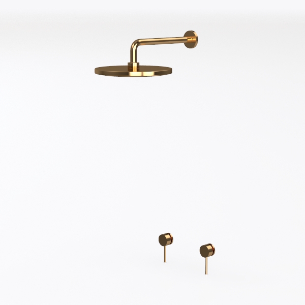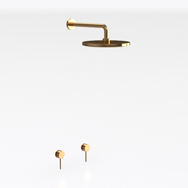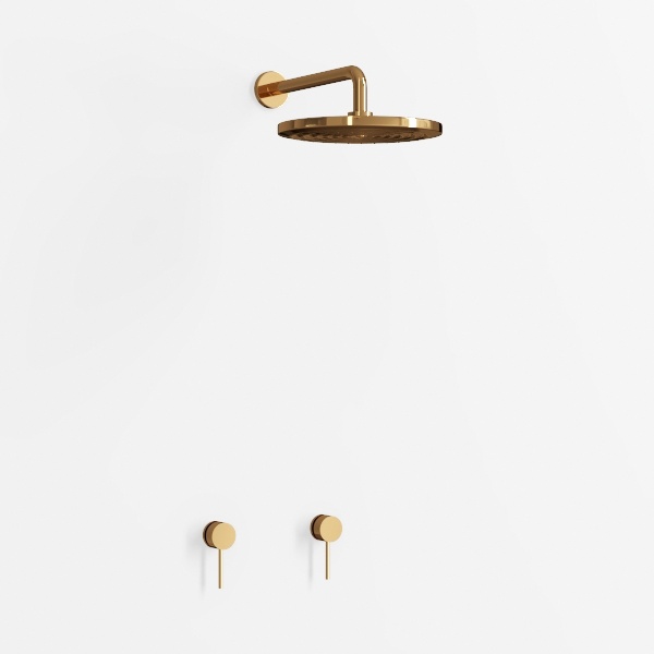 gotonovo Exposed Bathroom Shower Faucet Set Shower Fixture 8 Inch Rainfall Shower Head Handheld Shower Cross Handle Wall Mount 2 Functions Polished Gold