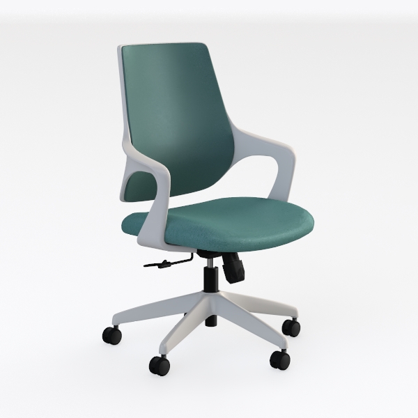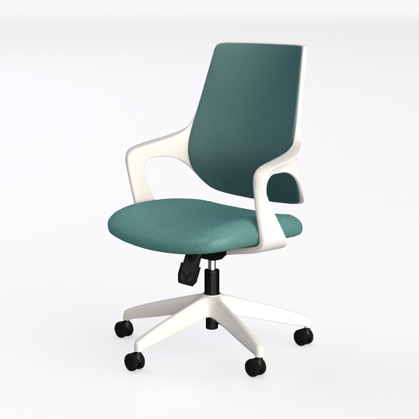 Inspired by Scandinavian minimalism, this chair blends soft, textured mint green upholstery with crisp white armrests and a geometric base. Its contoured back and firm seat offer all-day comfort, while smooth-rolling casters ensure easy movement. Ideal for a modern home office or minimalist workspace, complementing sleek desks and warm ambient lighting.