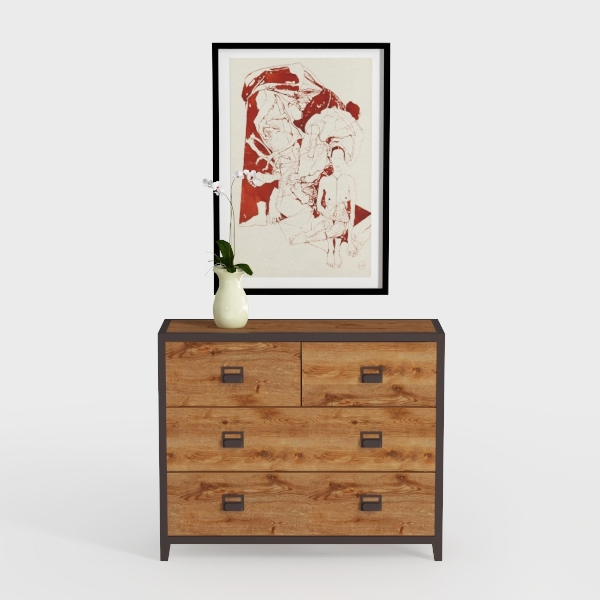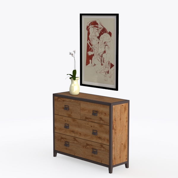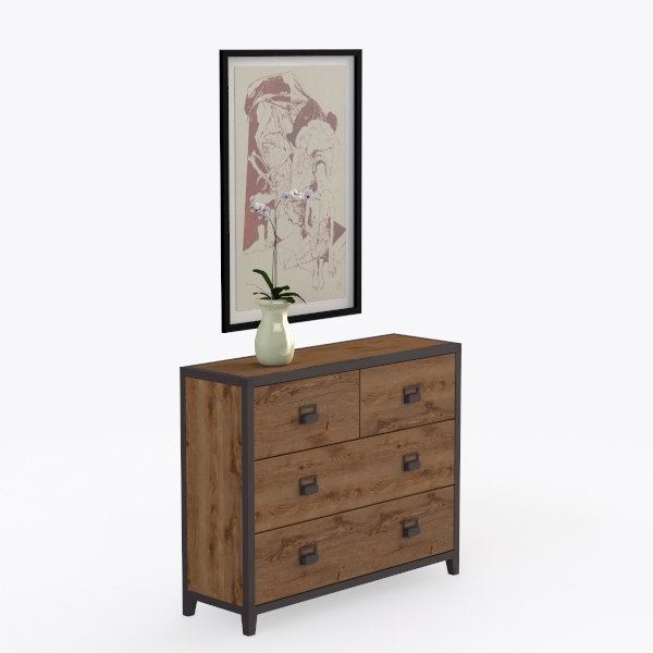 Blending natural warmth with industrial edge, this piece draws inspiration from rustic craftsmanship and modern minimalism. Its wooden drawers, with visible grain and smooth matte finish, offer tactile comfort, while dark metal frames add sleek contrast, creating balanced visual rhythm. Ideal for modern living rooms or cozy bedrooms, pair with abstract art and a ceramic vase to enhance a warm, curated space. Spacious drawers provide ample storage, making daily organization effortless and stylish.