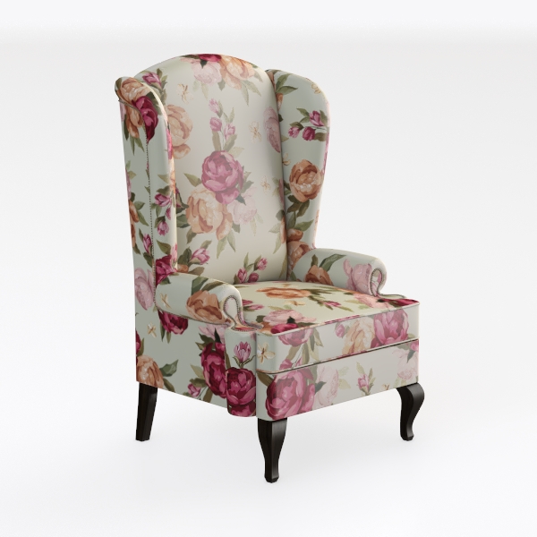 Drawing inspiration from the timeless allure of cottage gardens, this wingback chair weaves together nostalgic charm with a fresh, floral spirit. Its soft, textured upholstery feels delightfully smooth to the touch, inviting gentle contact, while the intricate print—drenched in soft pink, warm peach, and deep crimson roses set against a creamy base—unfolds like a blooming garden in full bloom, balancing vibrancy with subtlety to avoid overwhelming the eye.