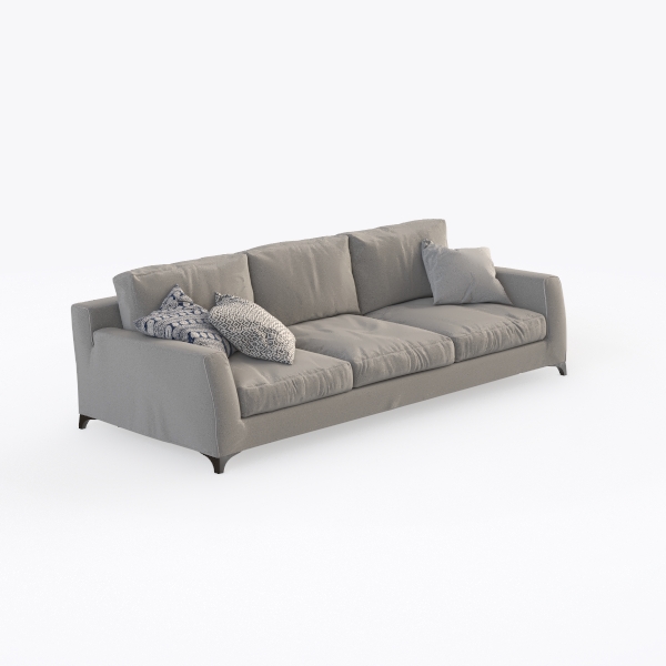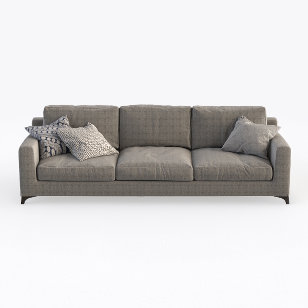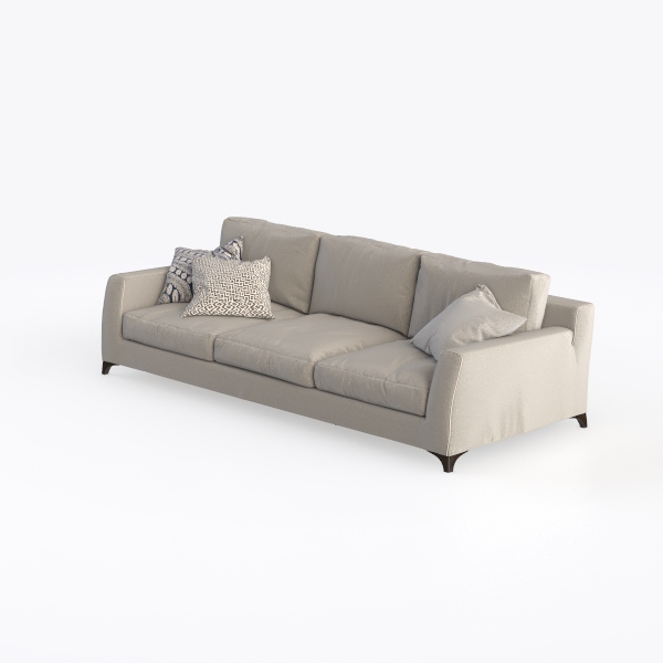 Crafted with a textured linen-like fabric, it offers a tactile experience: smooth yet subtly structured, the material feels soft against the skin while maintaining shape, resisting sagging even with frequent use. The three-seater layout, with gently sloped armrests and a streamlined profile, balances spaciousness with intimacy, making it ideal for both quiet evenings and lively conversations.