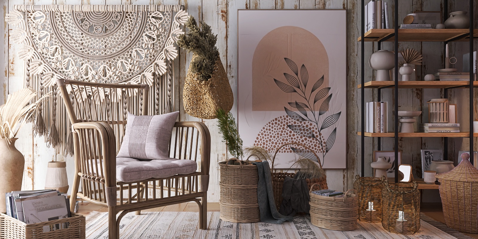 Crafted from warm wood and sleek black metal, this shelving unit blends Scandinavian minimalism with industrial charm. Natural wood shelves offer soft, tactile warmth, while metal frames add cool structural contrast, creating a serene, cohesive look. Ideal for modern living rooms or studies, it pairs seamlessly with neutral decor, framed art, and potted greenery, balancing storage and display with timeless appeal.