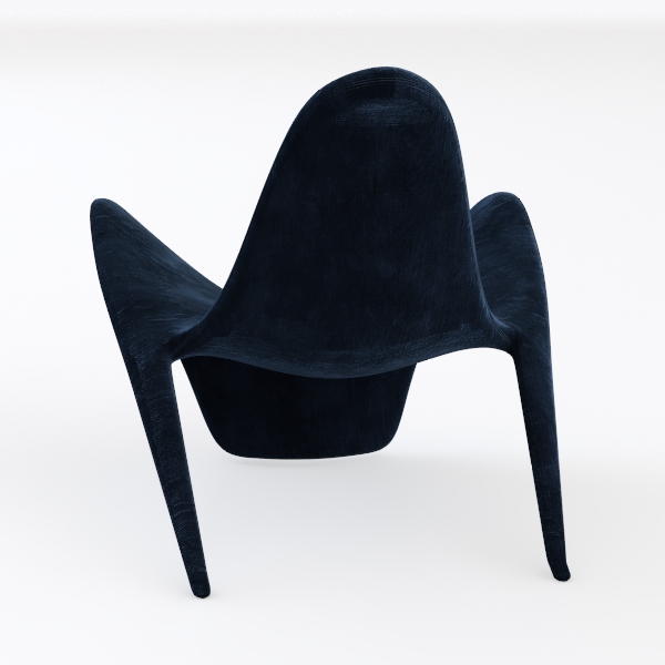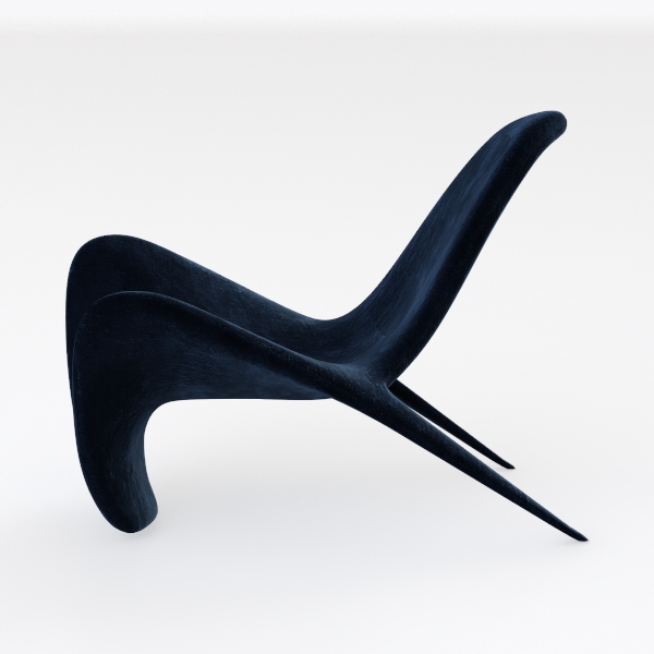 This striking piece draws design inspiration from the fluidity of natural forms—think sculptural seashells or the gentle curve of a breaking wave—blending organic softness with geometric precision. The rich navy upholstery, rendered in sumptuously soft velvet, feels surprisingly lightweight to the touch; its deep, velvety texture catches light subtly, casting a warm, inviting glow that softens the chair’s bold silhouette. Visually, it balances drama and restraint: sinuous armrests flow into a seamless backrest, while tapering, angular legs extend downward like delicate stilts, creating an illusion of weightlessness that makes the piece feel both substantial and ethereal.