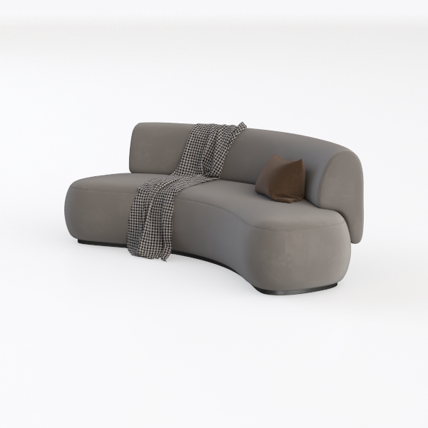 This sofa takes cues from the organic, flowing lines of nature—think undulating dunes or gently curved shorelines—resulting in a silhouette that feels both soft and intentional. Crafted with a sumptuously textured upholstery in a warm, soft gray, its surface invites tactile connection: smooth yet with a subtle, velvety depth that catches light softly, making it feel both premium and approachable. The absence of sharp angles, replaced by gentle curves, creates a sense of calm, turning it into a focal point that harmonizes with rather than disrupts a room’s energy.