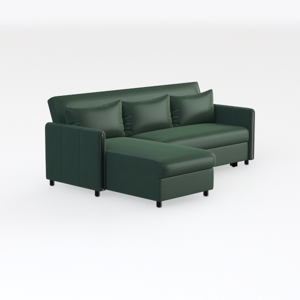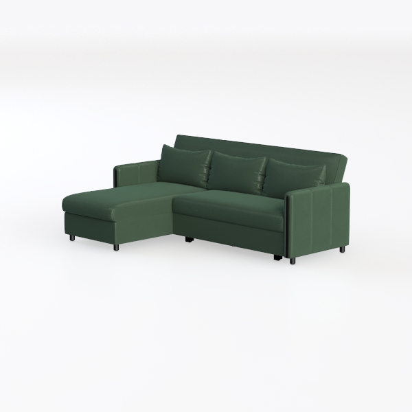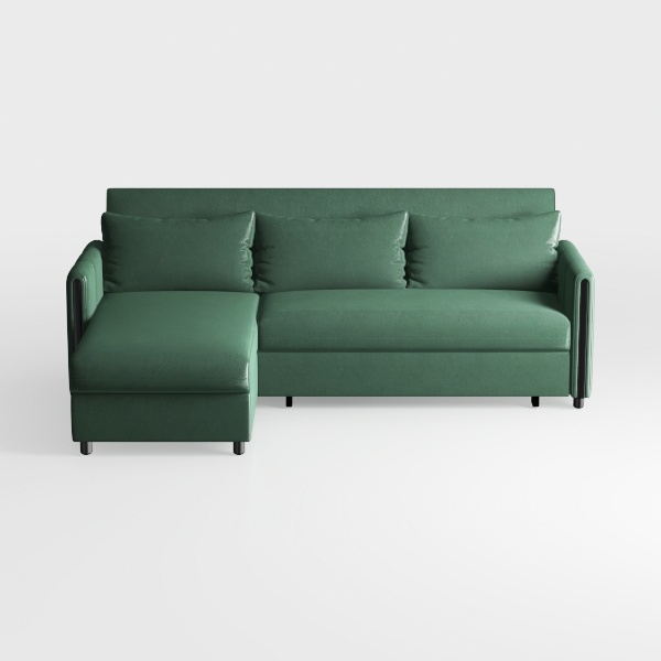 Drawing inspiration from the calming tones of the natural world and the crisp aesthetics of modern design, this piece merges organic warmth with contemporary simplicity. Crafted with a sumptuously textured, soft-to-the-touch upholstery in a deep, earthy green, it offers immediate tactile comfort while adding a rich, grounding hue to any space. The streamlined L-shape, with gently sloped armrests and plump, well-padded cushions, creates a harmonious balance of elegance and coziness, its clean lines enhancing the sense of openness.