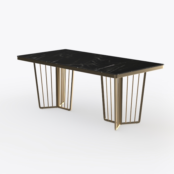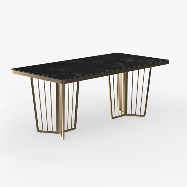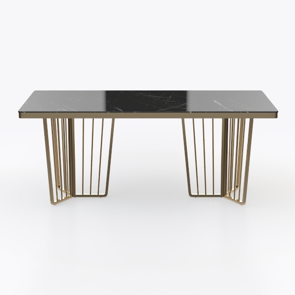 Inspired by the blend of natural stone and sleek metal, this console table merges timeless elegance with modern minimalism. Its smooth, glossy black marble top with striking white veining contrasts beautifully with the delicate golden metal frame, adding warmth and lightness. Ideal for modern living rooms or entryways, it pairs perfectly with marble coffee tables, metallic floor lamps, and neutral sofas. Slender, geometric legs ensure stability while keeping the design minimalist, offering ample space for decor or daily use.