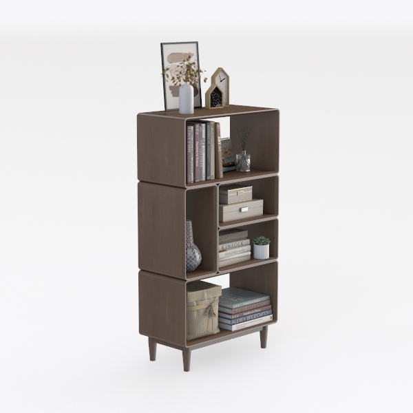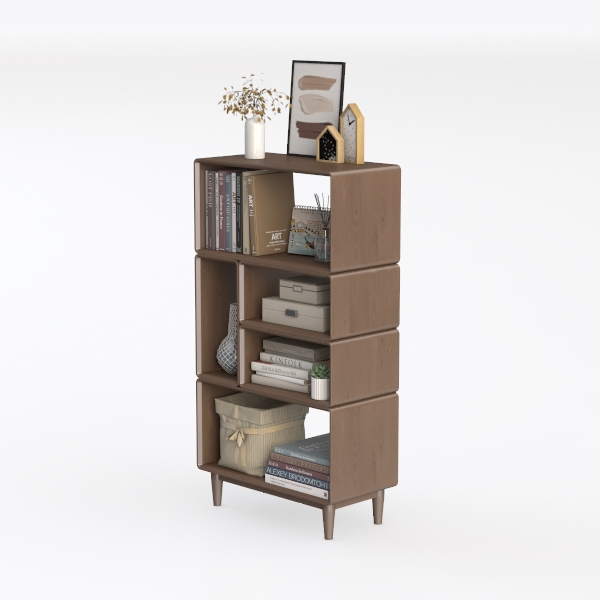 Inspired by natural minimalism, this wooden shelving unit blends warm tones and clean lines, with smooth surfaces and subtle wood grain for a tactile, inviting feel. Perfect for modern, Scandinavian-style living rooms or studies, it pairs beautifully with neutral sofas, marble accents, and potted plants. Its multi-level design offers ample space to display books, decor, and storage boxes, balancing functionality and aesthetic appeal with sturdy legs and versatile layout.