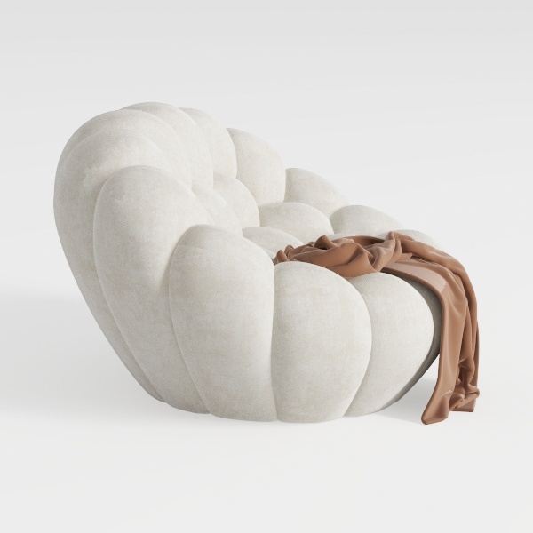 Inspired by the organic curves of seashells, this sofa features a soft, cloud-like texture with a smooth, velvety surface that feels gentle to the touch. Its warm, rounded silhouette creates a cozy, inviting presence, softening any living space. Pair it with marble side tables and warm wooden accents for a modern minimalist or Scandinavian vibe. The generous, plush shape offers exceptional comfort, ideal for lounging or casual gatherings.