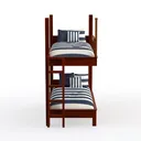 Inspired by classic family warmth and nautical charm, this wooden bunk bed blends warm, rich wood tones with clean blue-and-white stripes. Its smooth, sturdy frame gives a cozy, light-and-airy feel, ideal for family bedrooms. Pair with wooden nightstands and soft linen curtains for a vintage coastal look. The space-saving design and sturdy ladder ensure practical, easy access, perfect for kids’ rooms or small spaces.