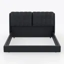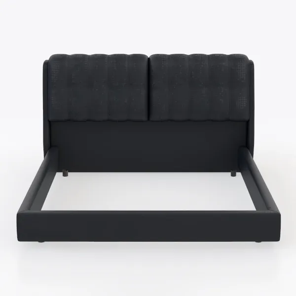 Inspired by minimalist elegance, this bed features a sleek black frame with a tufted headboard blending soft texture and modern edge. The smooth, slightly textured upholstery offers gentle touch; clean lines craft a calm, sophisticated vibe. Ideal for modern, minimalist or contemporary bedrooms, it pairs well with wooden floors and metallic accents for a polished feel. A wide, contoured headboard provides excellent back support, ensuring style and comfort during rest.