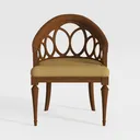 Inspired by classical architectural motifs, this armchair features a smooth, polished wood frame with intricate circular cutouts, balancing elegance and lightness. The warm, textured beige upholstery adds a soft, inviting touch, while the slender, tapering legs provide stable support. Perfect for a classic living room or study, pair it with marble coffee tables and vintage wall art to create a timeless, sophisticated ambiance.