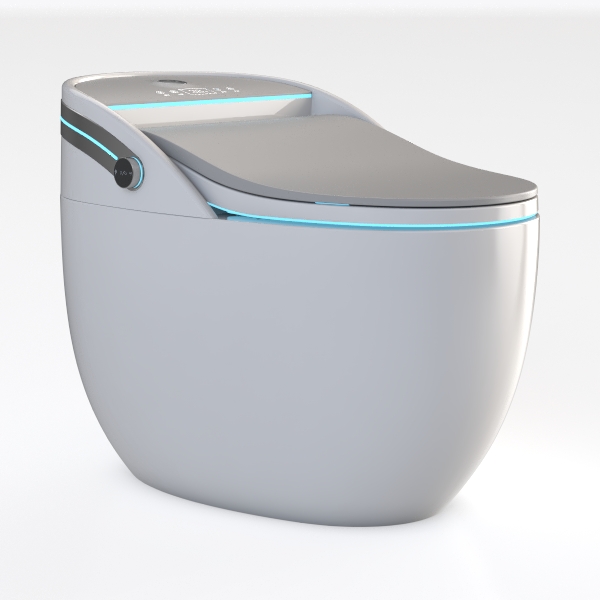 WinZo Luxury Smart Toilet With Bidet Seat, Elongated Egg Shaped Modern Design, Auto Open Auto Flush, Adjusted Heated Seat, Warm Water and Dryer, Night Light, Side Buttons, Glossy White