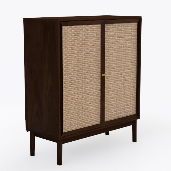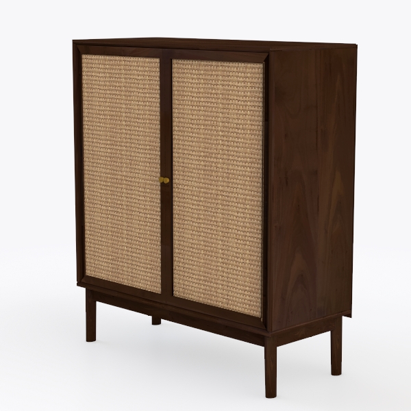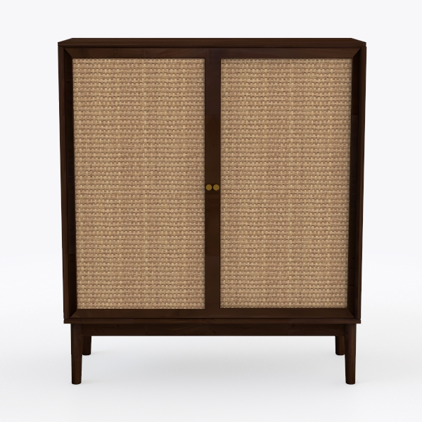 Farini Sideboard Buffet Cabinet with Storage, Bar Liquor Cabinet with Rattan Decorated Doors, Credenza Console Tablefor Dining Room, Living Room,Hallway,Walnut