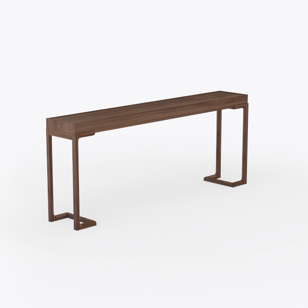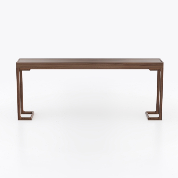 Inspired by traditional East Asian joinery, this console table blends heritage with modern minimalism. Its warm walnut finish has smooth, polished surfaces, revealing rich wood grain for depth. Ideal for a serene living room or study, it pairs with linen sofas and ceramic vases, enhancing classic and contemporary styles. A spacious tabletop offers room for decor/reading, with angled, sturdy legs ensuring stability.