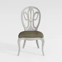This elegant chair, a harmonious blend of classical charm and modern restraint, stands as a refined statement piece in any interior. Its design draws inspiration from 18th-century European furniture traditions, reimagined with contemporary simplicity. The curved backrest features delicate, flowing motifs: a shell-like top accent, vine-like scrollwork, and intricate carvings along the legs, infusing timeless artistry without feeling overly ornate.